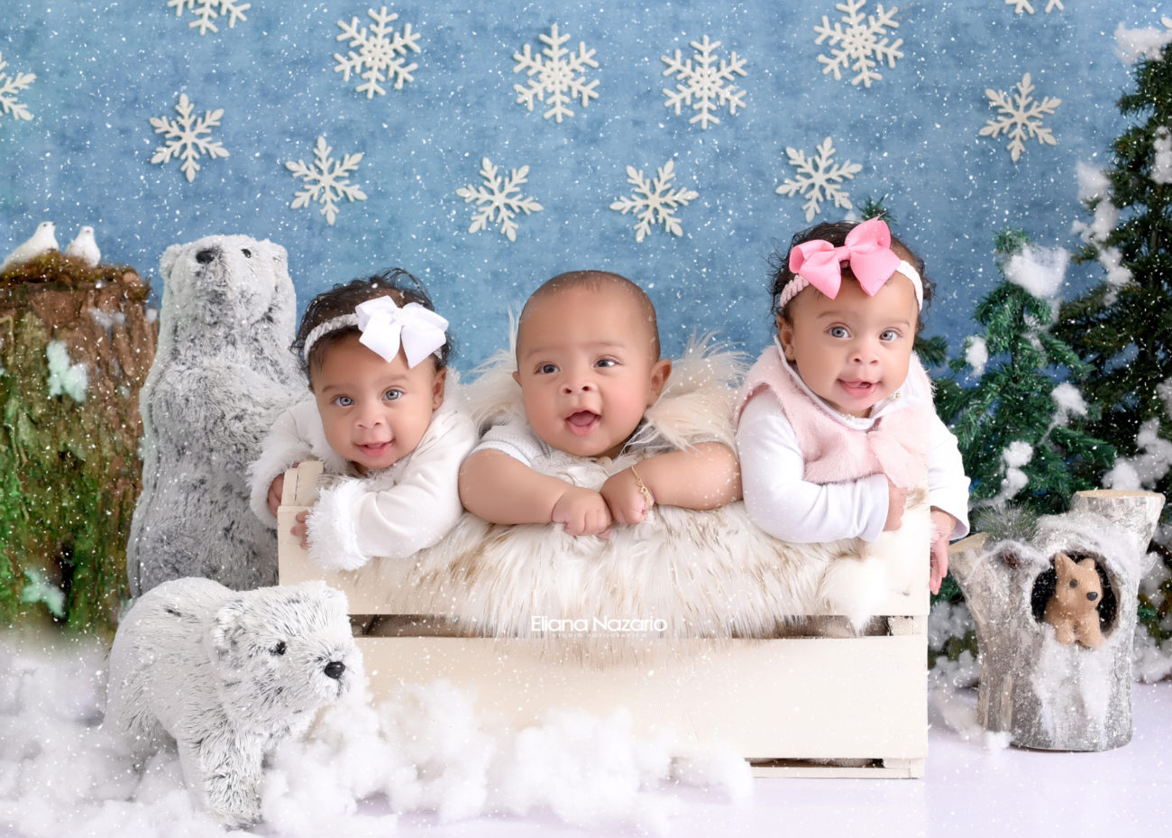 A fotógrafa Eliana Nazario já fez outros ensaios dos pequenos Breno, Vitória e Valéria, e agora o tema foi o inverno. Com direito a casacos quentinhos, gorros e laços, o trio não economizou sorrisos durante a sessão de fotos.